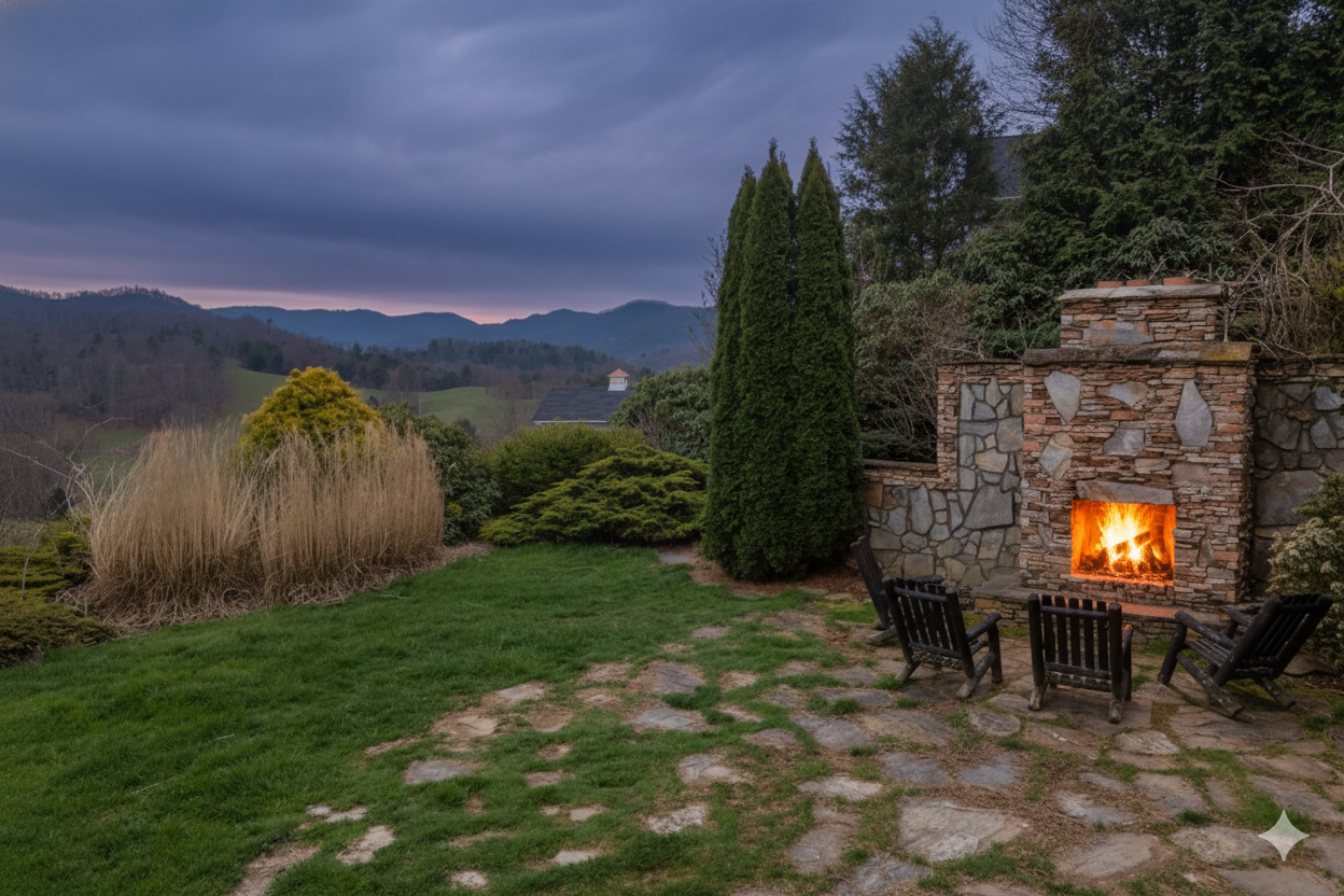 Cozy up by the fire with a view! This outdoor fireplace offers the perfect setting for relaxation and enjoying the breathtaking mountain scenery.