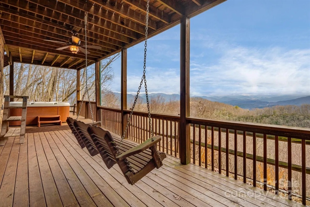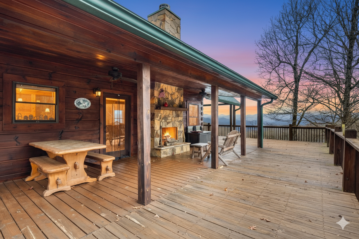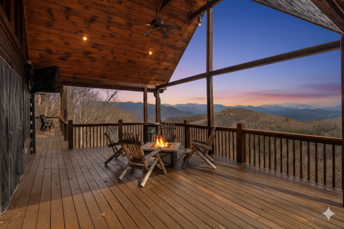 ✨ Expansive wraparound deck with mountain views and private hot tub